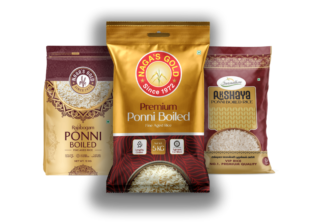 At Nagas’s Gold, we adhere strictly to standardized procedures for processing and harvesting, which commence with the procurement of harvest from local farmers spanning Ponneri to Tiruvallur district. This meticulous process entails thorough paddy cleaning and drying, followed by storage for aging. Our distinctive aged rice is renowned for its superior quality. After the aging period, we carefully pre-clean, soak, and boil the exceptionally fine rice grains, before subjecting them to the milling process. The culmination of these steps ensures that our premium rice reaches your hands, meticulously packaged in our visually appealing branding.